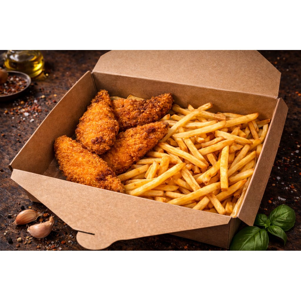 Kuřecí stripsy 4 ks + hranolky